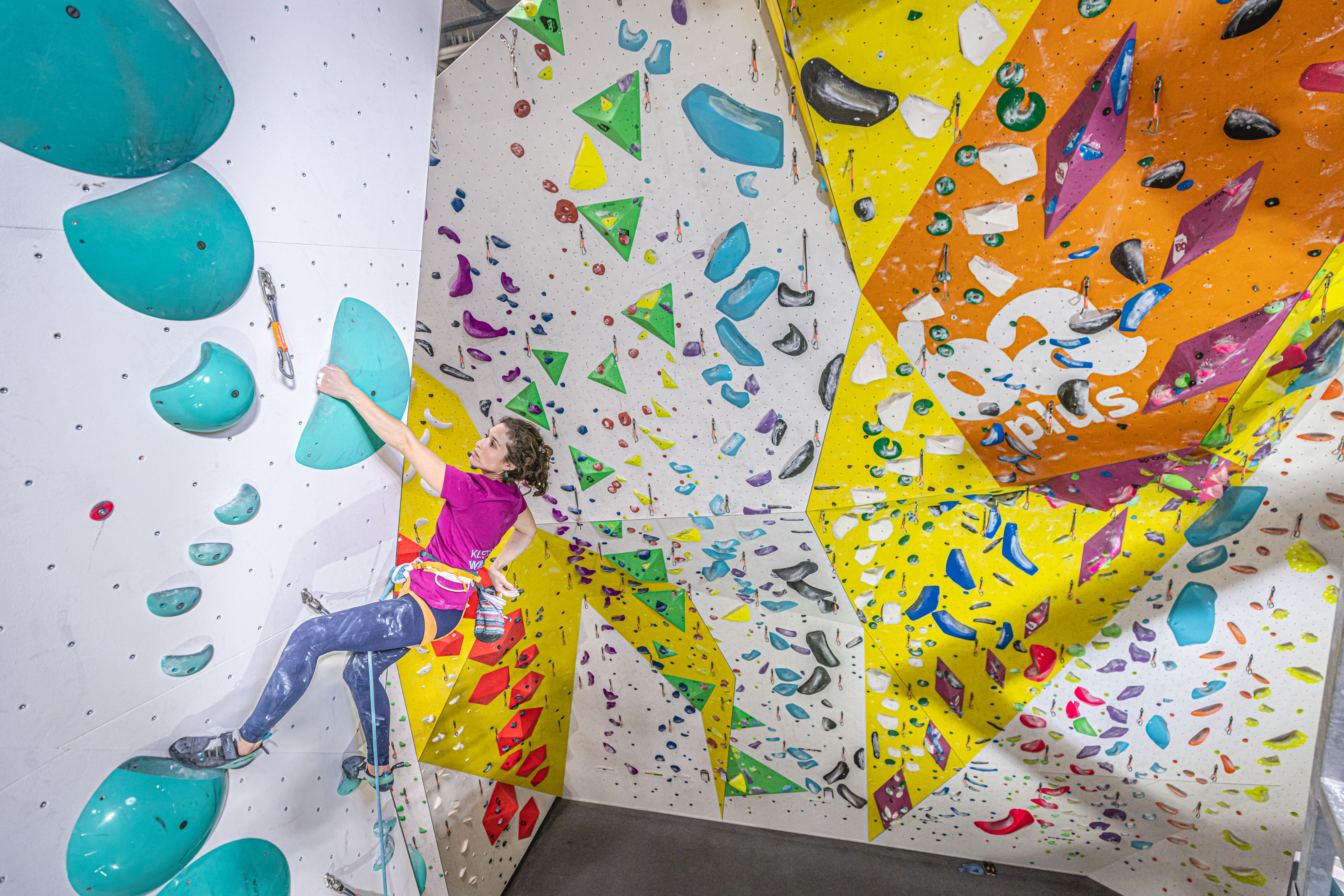 Im 6aplus findest du Routen in allen Schwierigkeitsgraden an bis zu 17m hohen Kletterwänden.